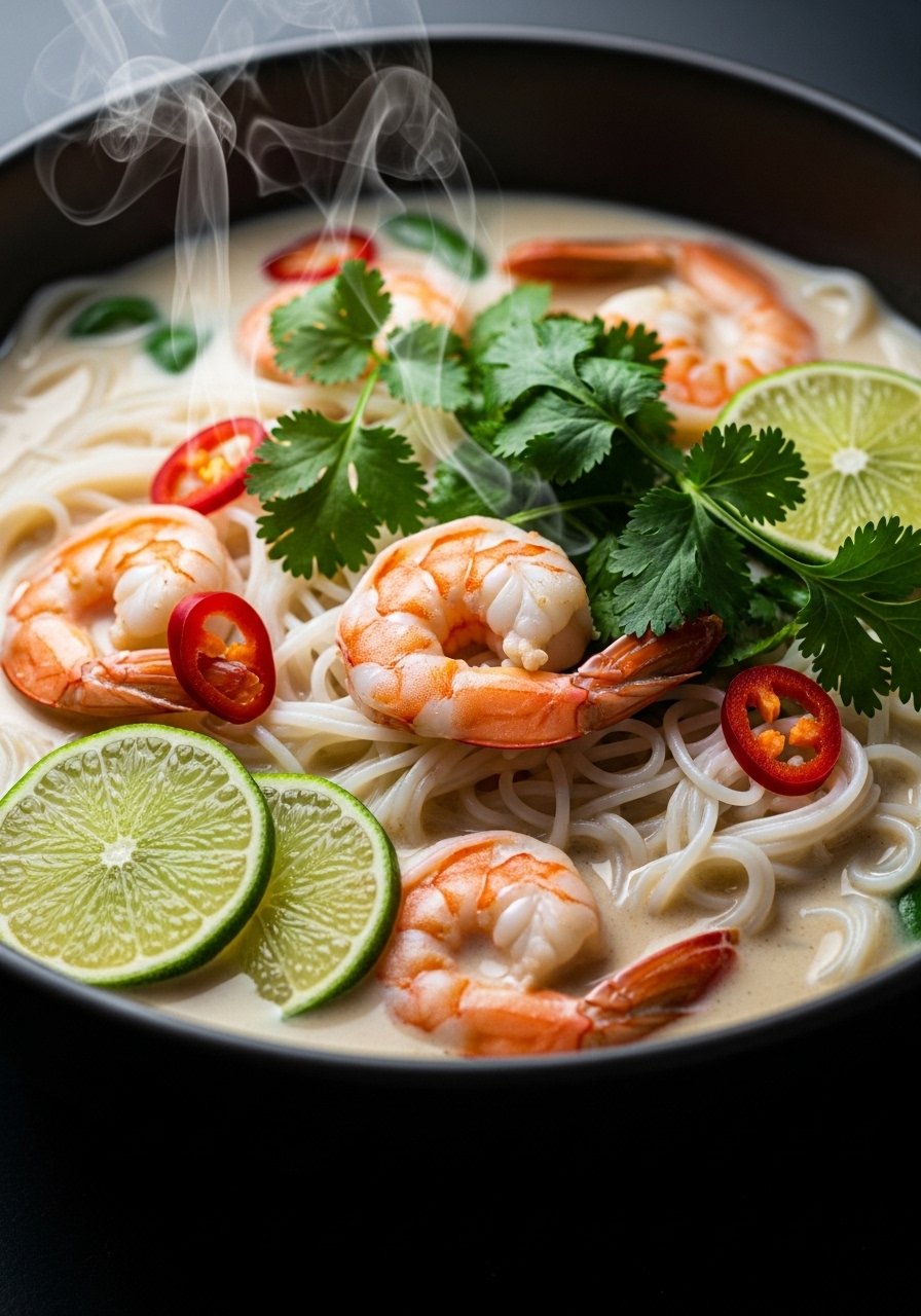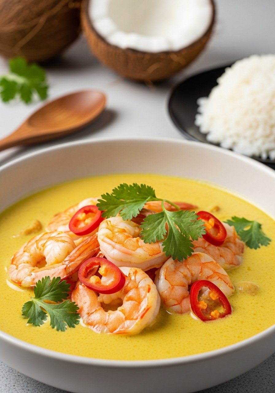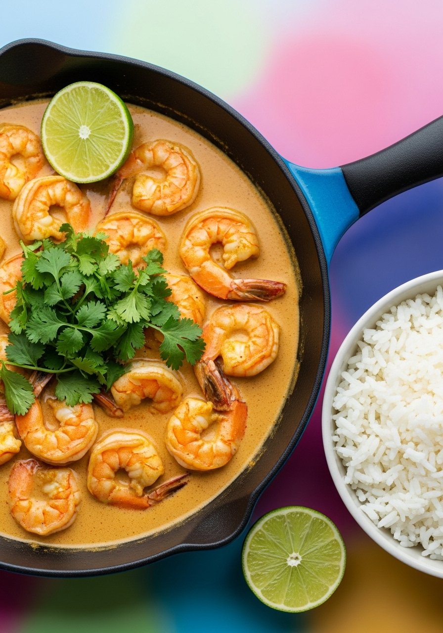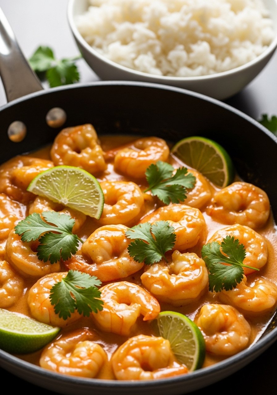 - Cook Shrimp: Add shrimp and simmer 3–4 minutes until just opaque. Stir in fish sauce and lime juice. Garnish and serve with rice.