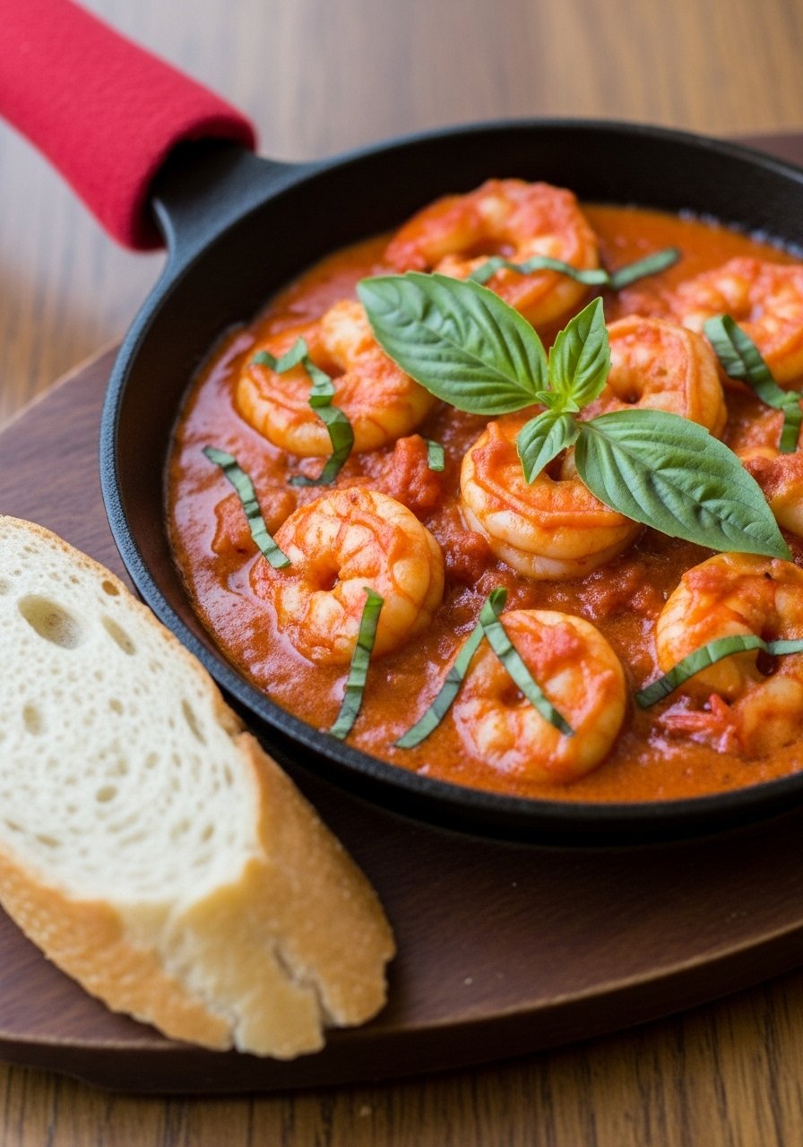 Tomato and cream meld into a luscious sauce that clings to plump shrimp—serve over pasta or crusty bread for a quick, comforting finish.