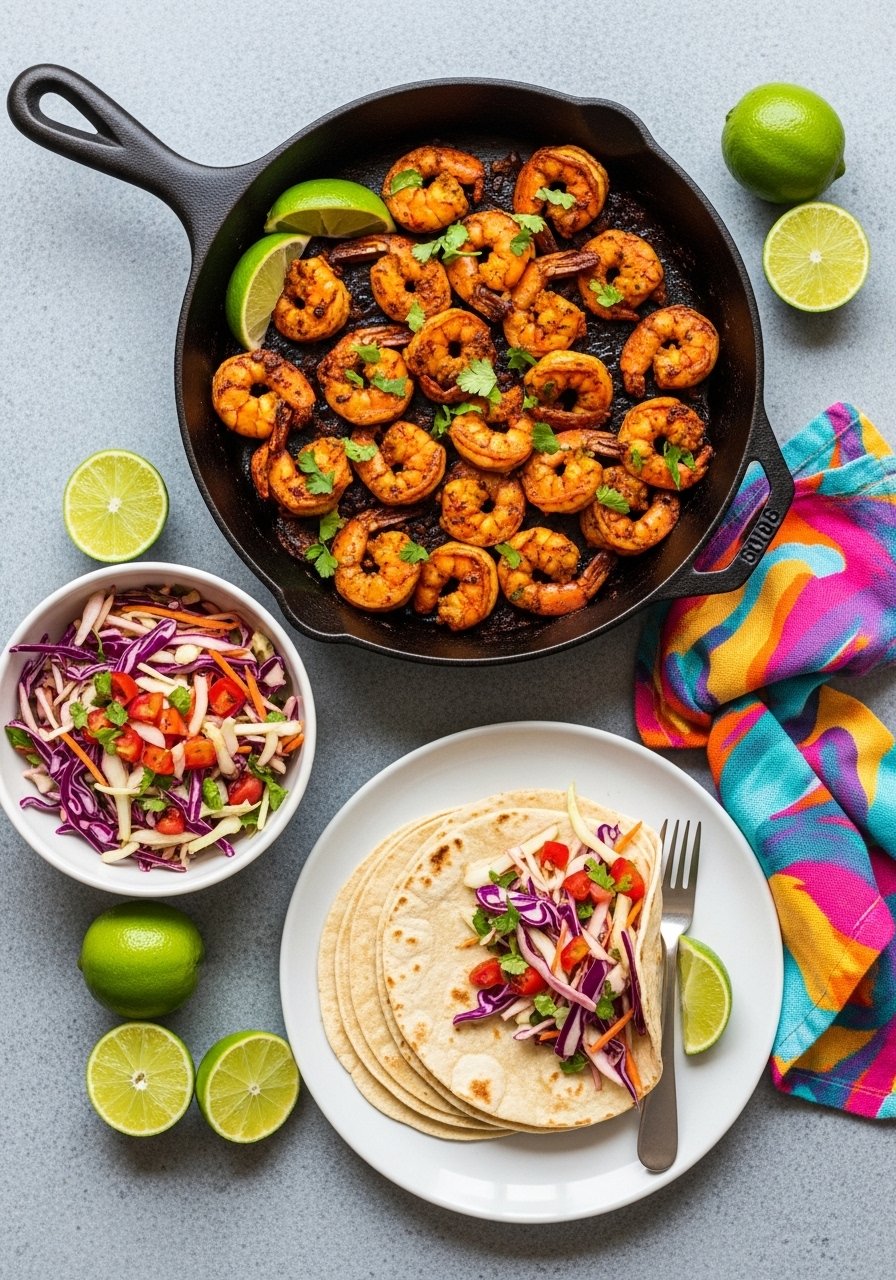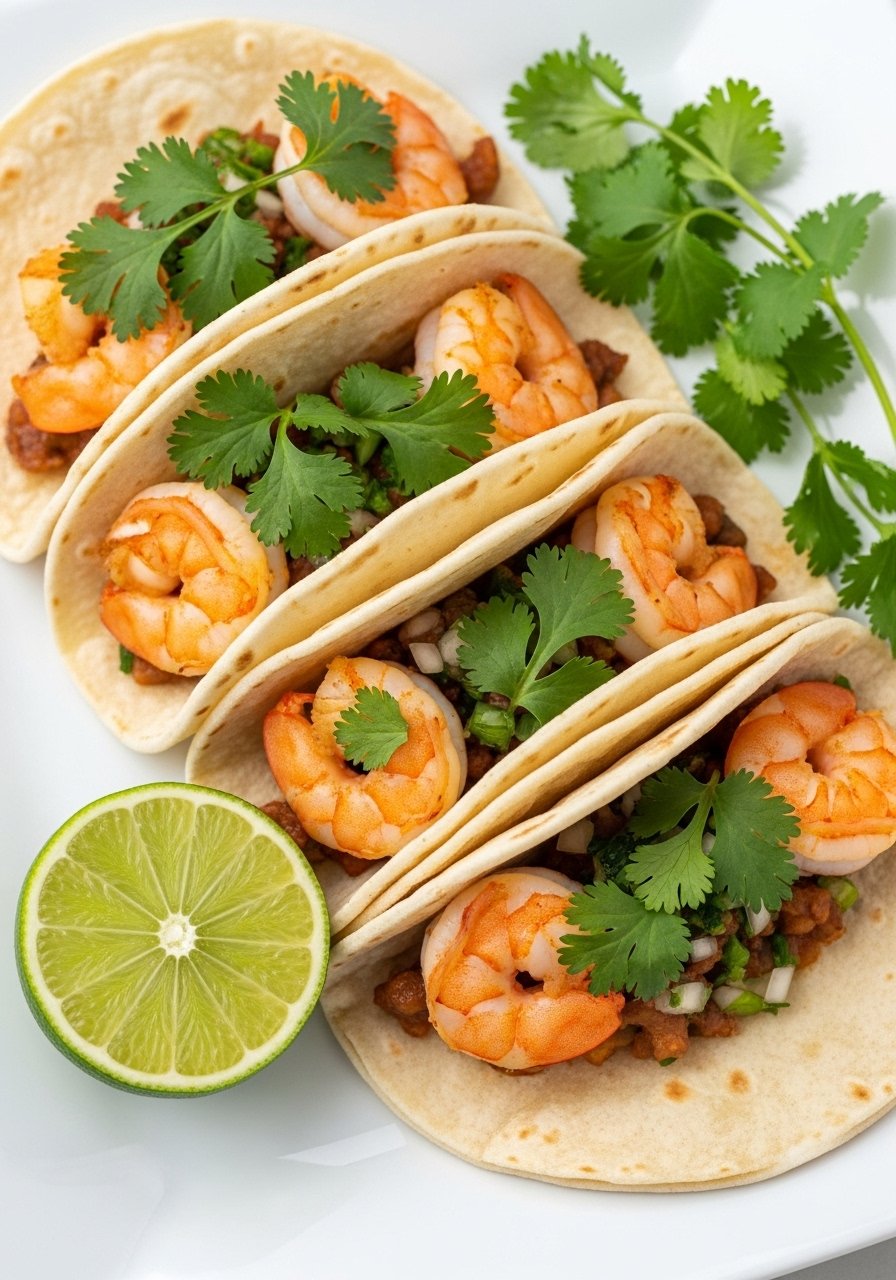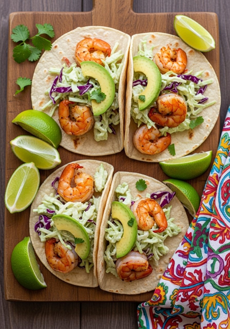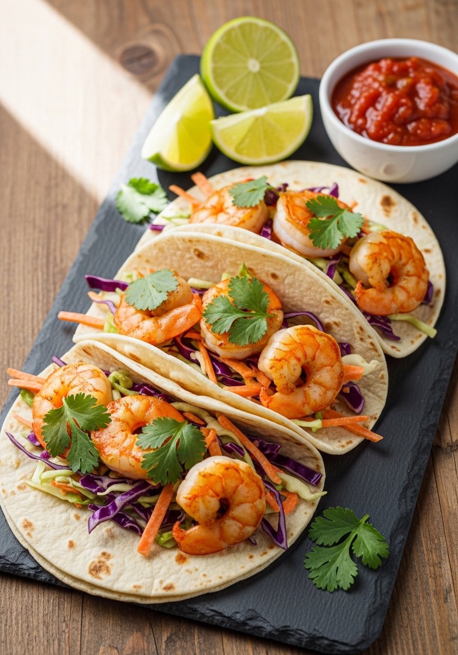 - Assemble Tacos: Warm tortillas, layer slaw and shrimp, garnish with cilantro and lime.