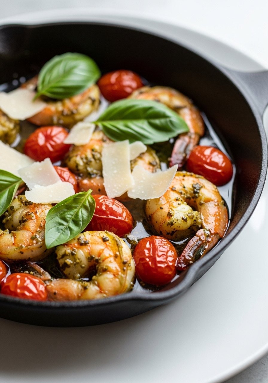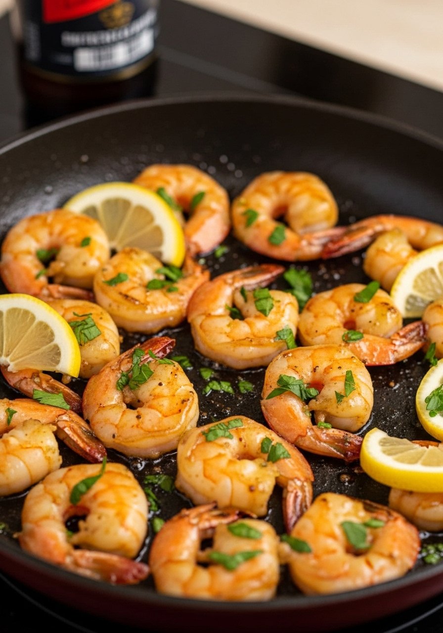 - Add Sauce: Pour sauce into pan, simmer 1–2 minutes until thick and glossy, coating shrimp.