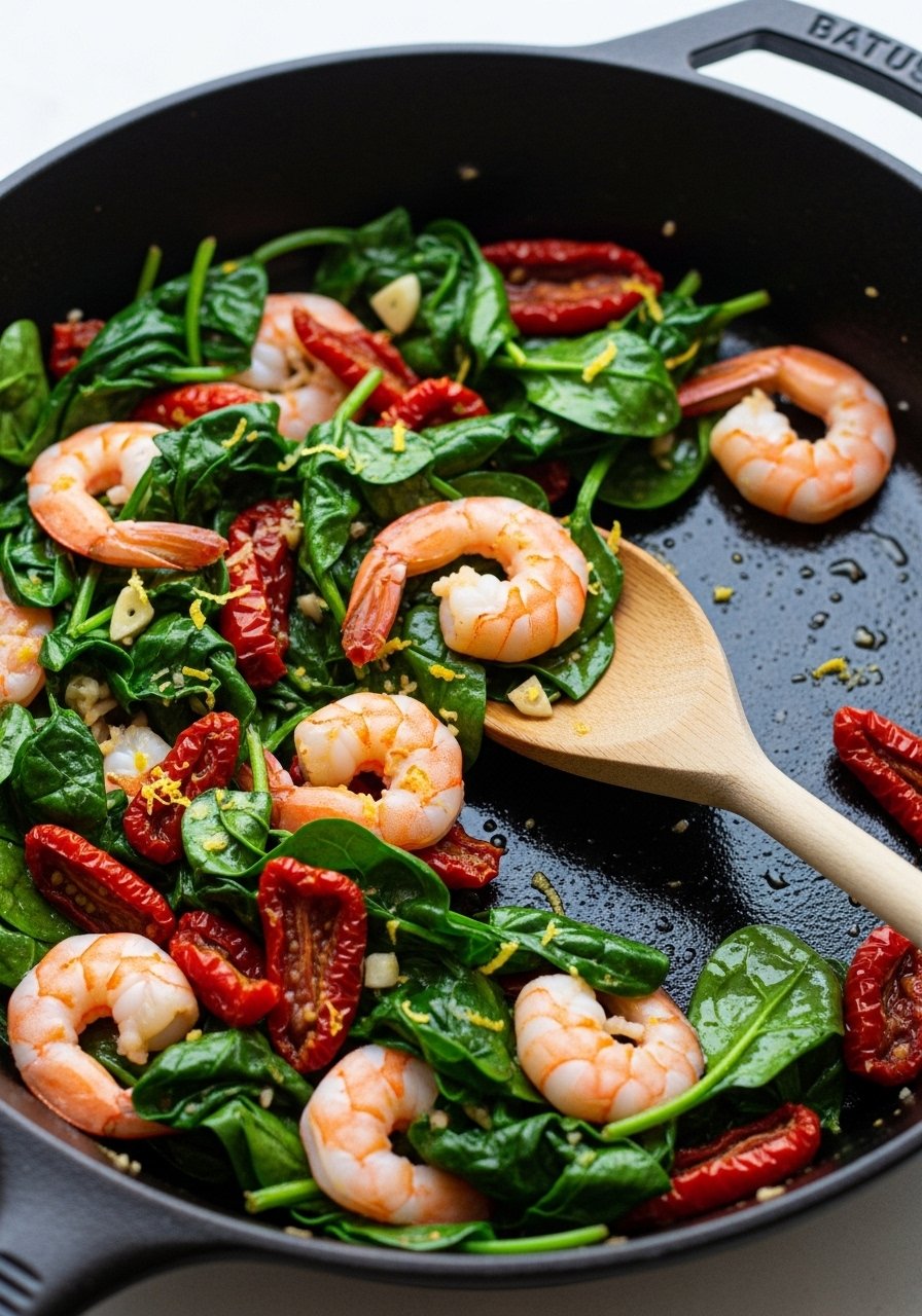 - Cook Shrimp: Add shrimp, cook 3–4 minutes until opaque.