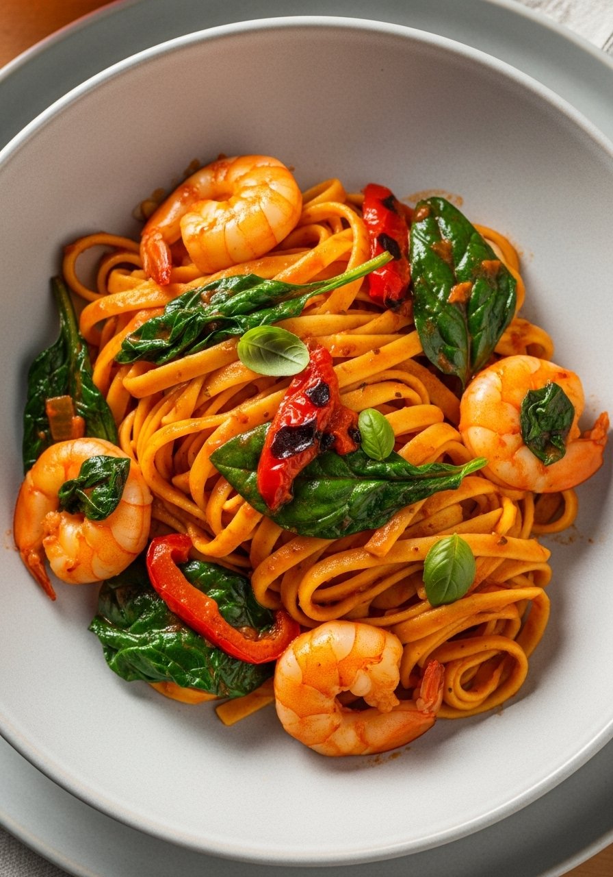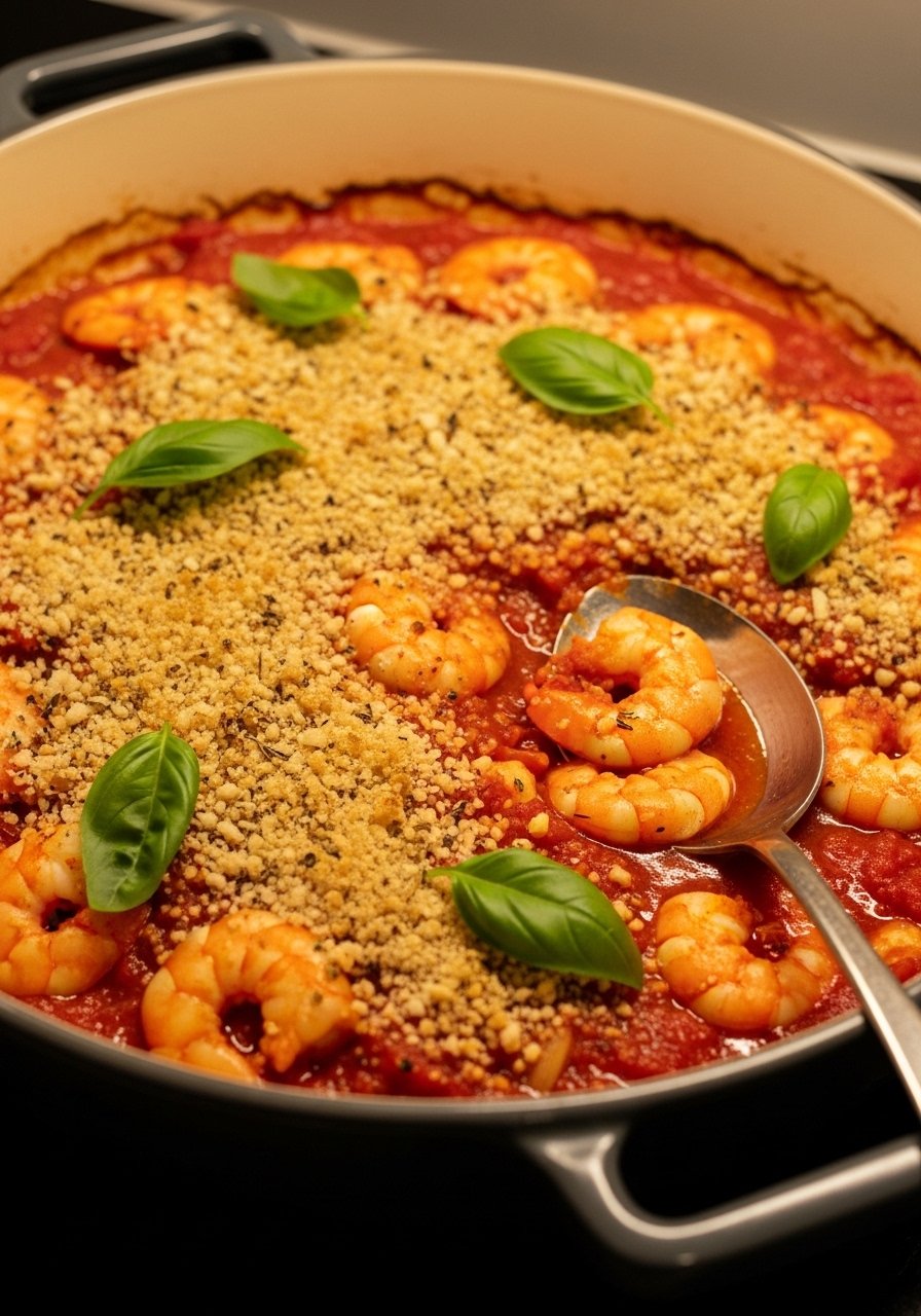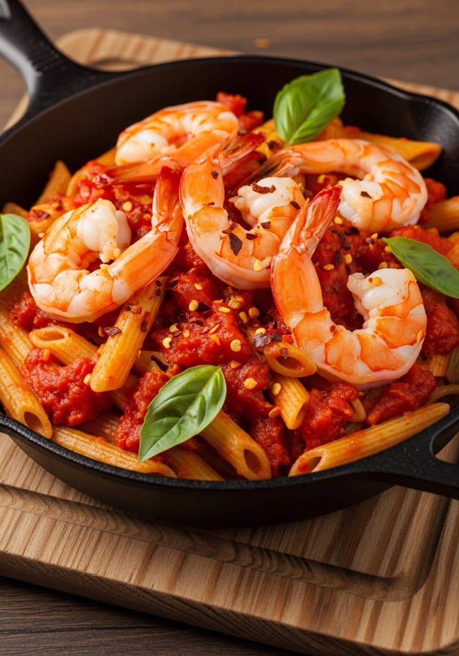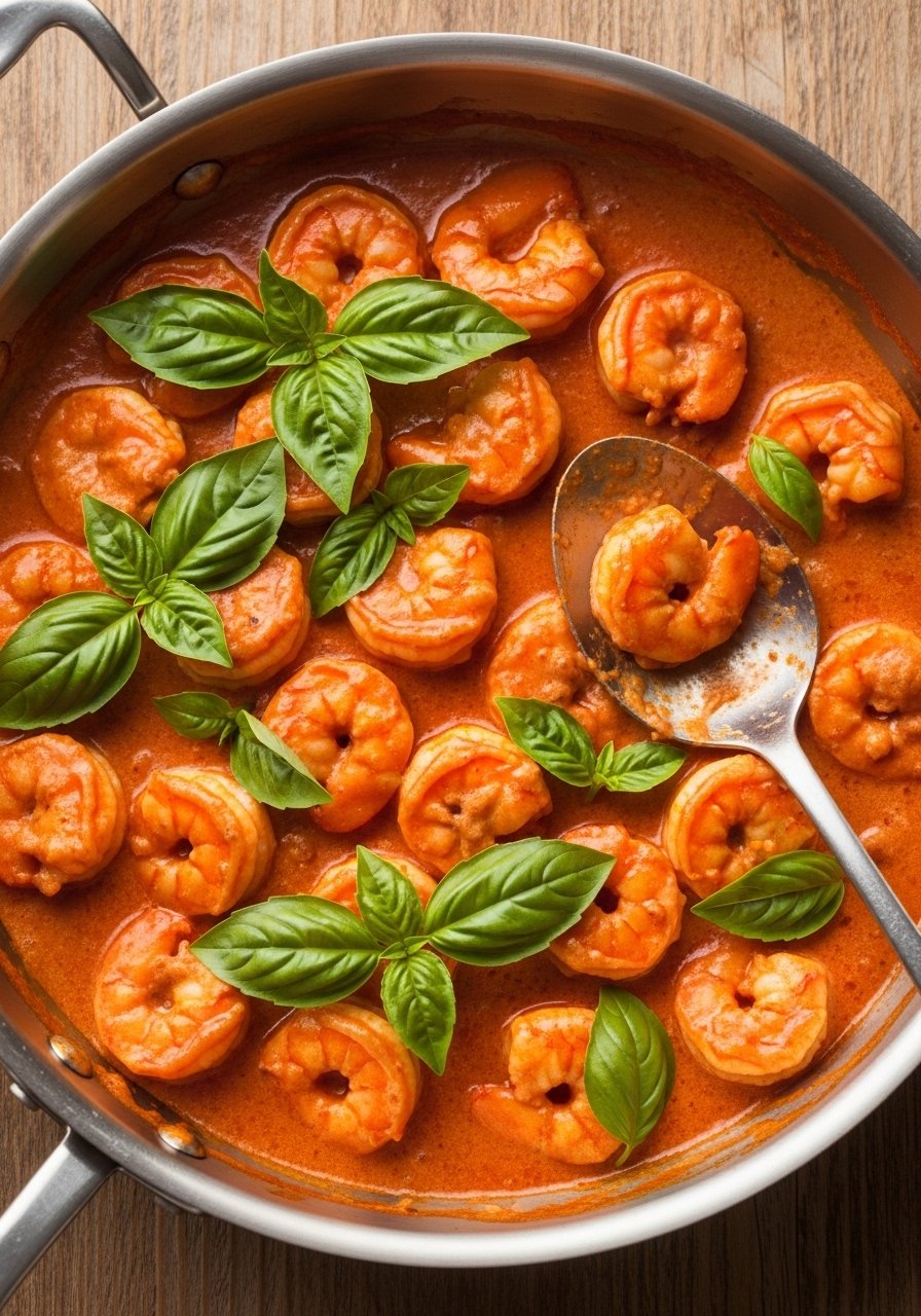 - Add Shrimp: Nestle shrimp into sauce, cook 3–4 minutes until opaque.