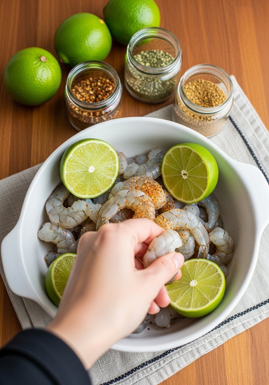 - Season Shrimp: Toss shrimp with chili powder, cumin, and salt.