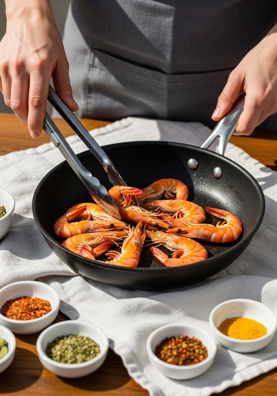- Cook Shrimp: Sear shrimp in a skillet 1–2 minutes per side.