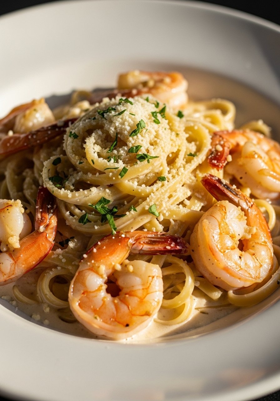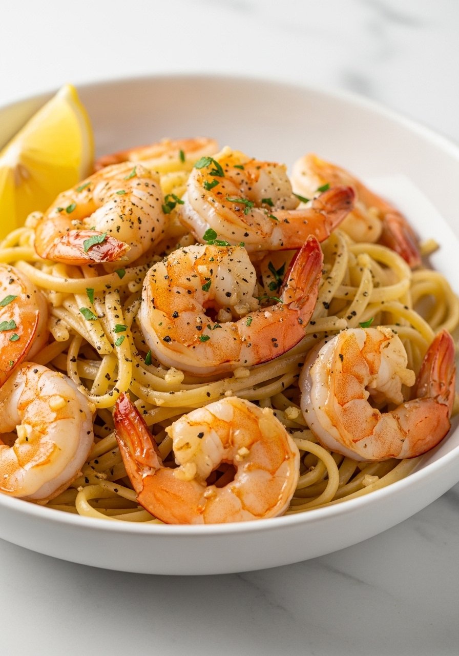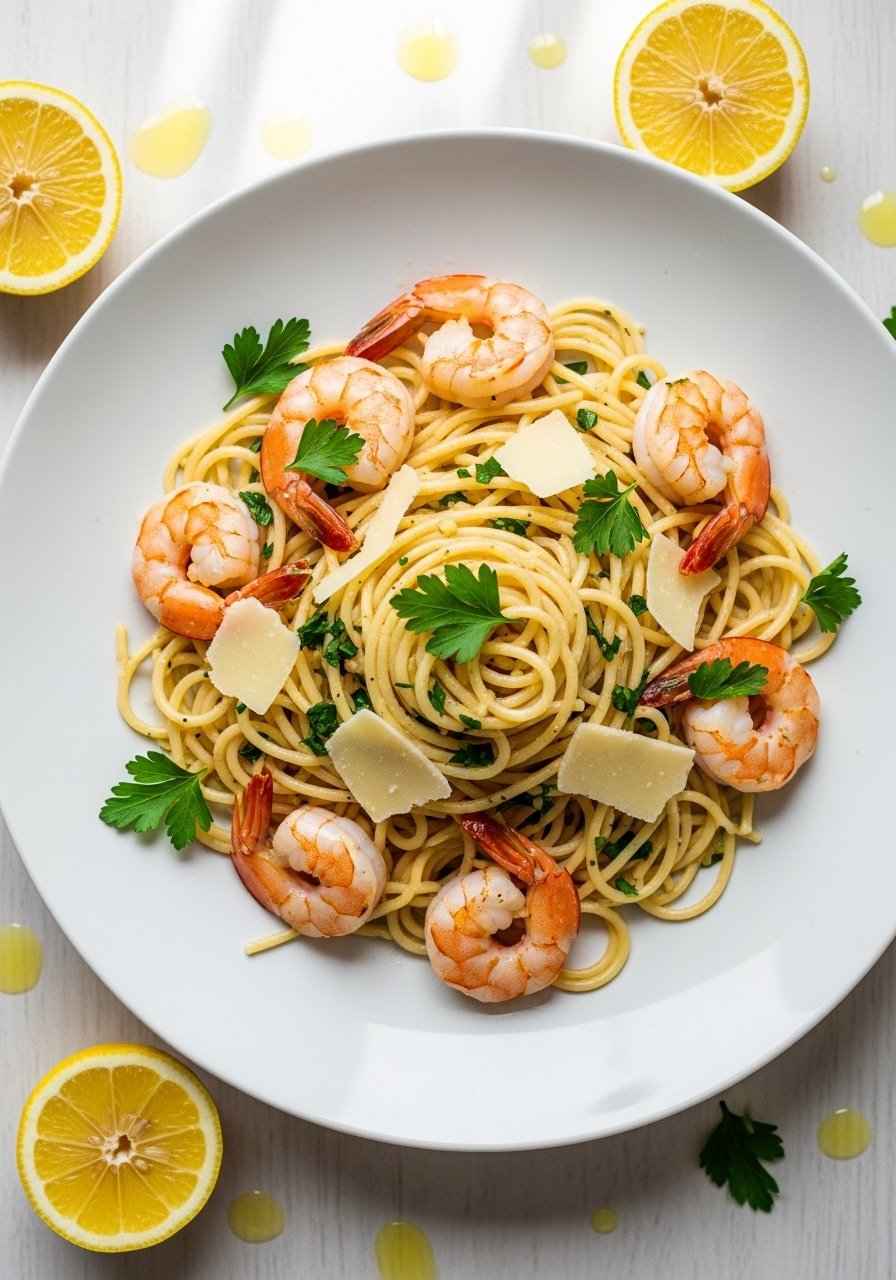 - Combine: Toss pasta with garlic oil, lemon juice, reserved pasta water, shrimp, and Parmesan. Season and garnish with parsley.