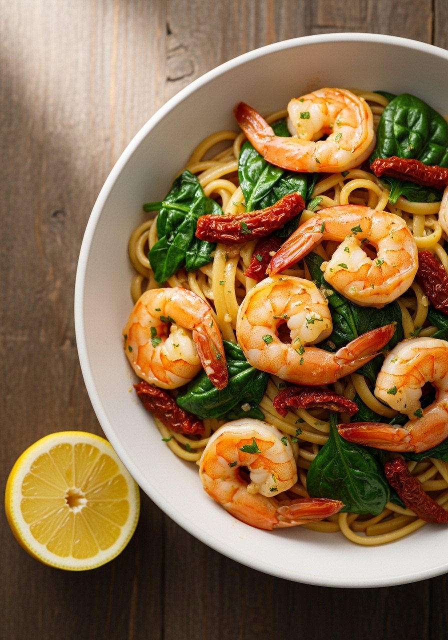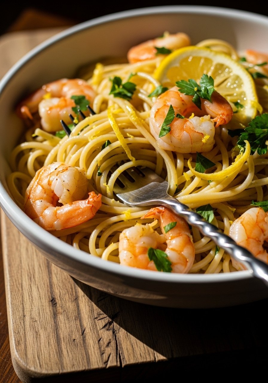 Bright lemon and garlic coat tender shrimp and pasta for a light, satisfying meal. Ready in roughly 25 minutes—ideal when you want something fresh but filling.