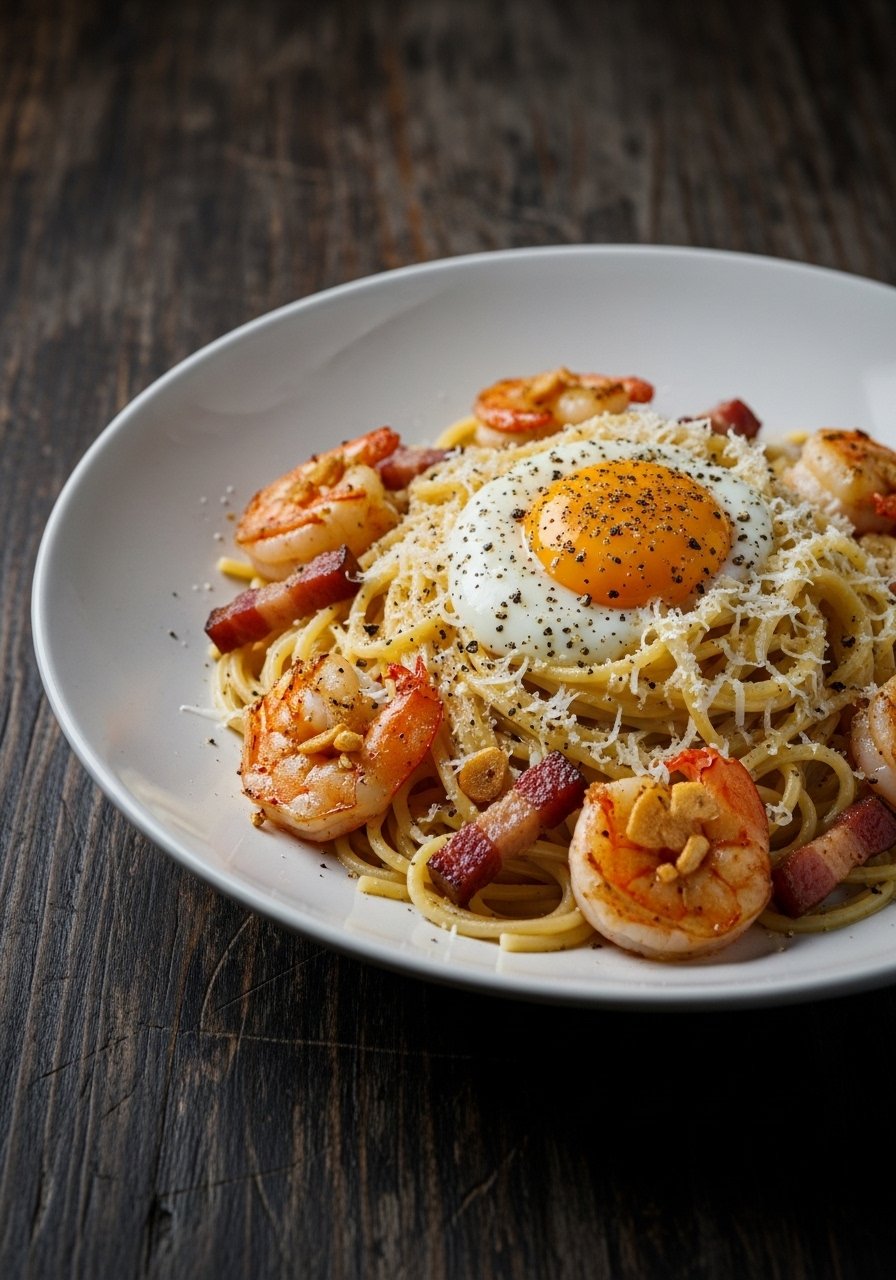 A weeknight carbonara twist using shrimp instead of pancetta—creamy egg-based sauce coats pasta for a rich, speedy dinner.
